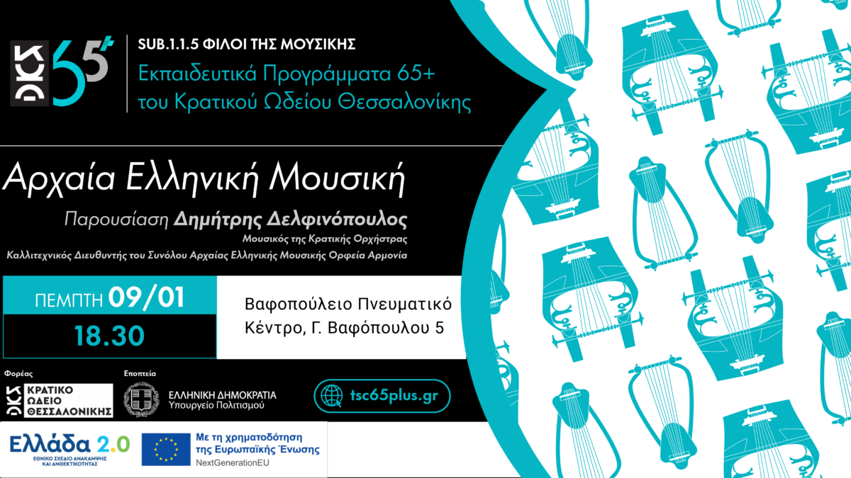 Στη μουσική μας παρουσίαση θα ασχοληθούμε με την Αρχαία Ελληνική Μουσική και τα όργανά της, τα οποία αποτελούν προπομπούς πολλών σύγχρονων μουσικών οργάνων. Επίσης, θα αναδειχθούν οι ιστορικές καταβολές της μουσικής των προγόνων μας, με αναφορές στα βασικά μουσικά όργανα που χρησιμοποιούσαν και στους τρόπους που αυτά συνόδευαν τα σημαντικά γεγονότα της κοινωνικής τους ζωής.