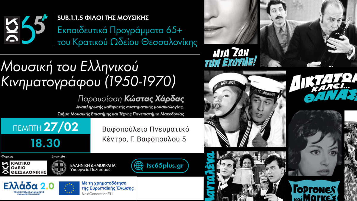 Η παρούσα παρουσίαση αρχικά αναφέρεται σε κάποιους από τους τρόπους με τους οποίους συνεισφέρει στη συνολική αφήγηση της ταινίας, ενώ στο κύριο μέρος της εστιάζει στη στυλιστικά ευρεία και εξαιρετική ενδιαφέρουσα μουσική που γράφτηκε για τον ελληνικό κινηματογράφο των δεκαετιών 1950 έως και 1970. Πρόκειται, αρχικά, για την εποχή του περάσματος από τον νεορεαλισμό στον κινηματογράφο του παραγωγού (στον οποίο καθοριστικός ήταν ο ρόλος της εταιρείας Φίνος Φιλμς). Η παρουσίαση περιλαμβάνει αναφορά και στη στροφή προς τον κινηματογράφο του δημιουργού-σκηνοθέτη, η οποία εδραιώθηκε τα πρώτα χρόνια της δεκαετίας του 1970.