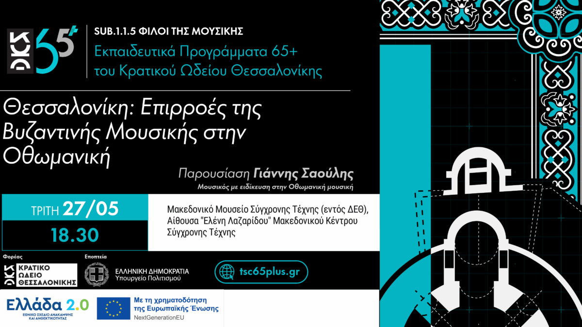 03/06/2025Παρουσίαση των επιρροών της Βυζαντινής μουσικής στην Οθωμανική, στο πλαίσιο των εκπαιδευτικών προγραμμάτων 65+ του Κρατικού Ωδείου Θεσσαλονίκης