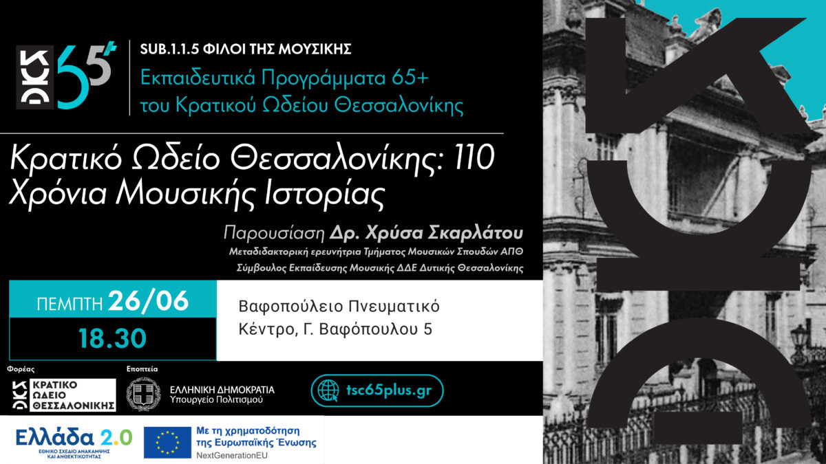 Αν και το ΚΩΘ υπήρξε το δεύτερο ωδείο που ιδρύθηκε στη Θεσσαλονίκη, ωστόσο υπήρξε επί δεκαετίες το μοναδικό κρατικό εκπαιδευτικό μουσικό ίδρυμα και παραμένει το μοναδικό κρατικό ωδείο της χώρας. Η παρουσίαση θα προσφέρει μία ιστορική αναδρομή της ίδρυσης και λειτουργίας του Ωδείου έως τις μέρες μας, με σκοπό να αναδειχθεί η συμβολή και προσφορά του στη μουσική ζωή και εκπαίδευση της Θεσσαλονίκης. Παράλληλα, θα παρουσιαστούν οι πρωτεργάτες καθηγητές και οι σημαντικές μορφές που είτε δίδαξαν είτε μαθήτευσαν στο ΚΩΘ. Τέλος, θα συζητηθεί η ανταπόκριση του Ωδείου στις προκλήσεις των διαρκώς μεταβαλλόμενων μουσικών δεδομένων και των τεχνολογικών εξελίξεων της πόλης μας και της σύγχρονης κοινωνίας.