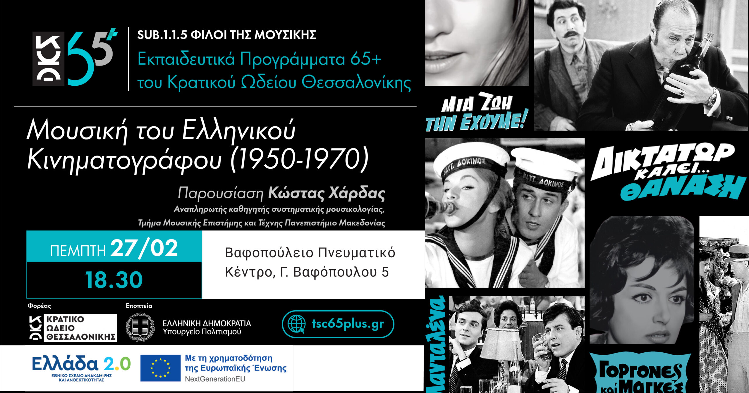 Παρουσίαση: Μουσική του Ελληνικού Κινηματογράφου (1950-1970), Πέμπτη 27/02/2025